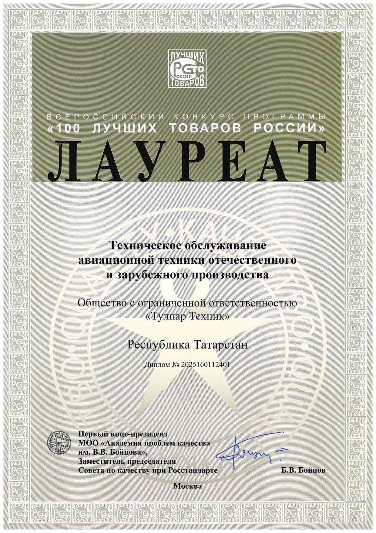 Award “100 best products of Russia” in nomination “Aircraft maintenance” (2017)