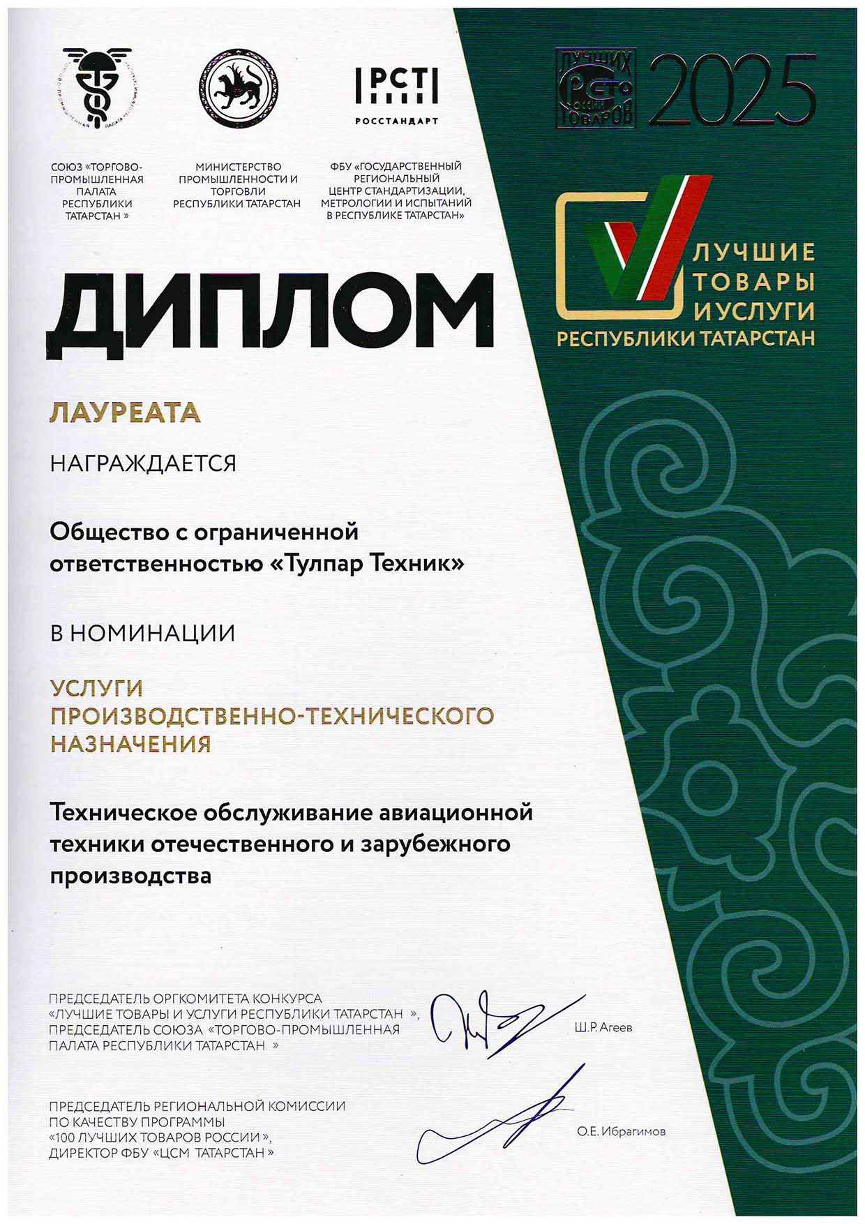 Award “The best products of Tatarstan” in nomination “Aircraft maintenance” (2017)