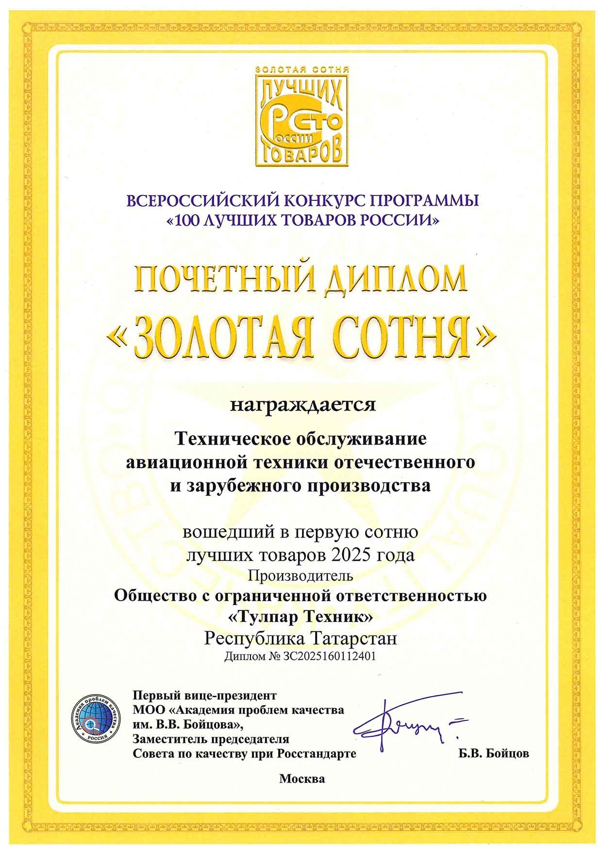 Award “100 best products of Russia” in nomination “Aircraft maintenance” (2017)